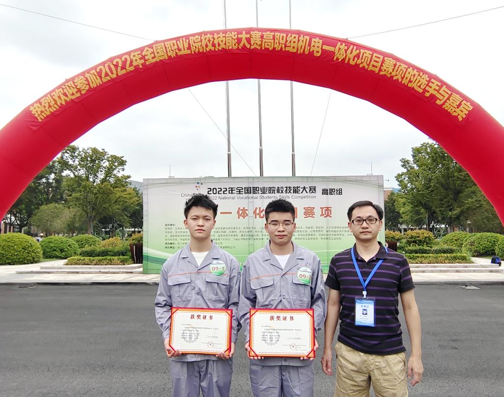 8月25-28日,全国职业院校技能大赛(高职组)“机电一体化项目”赛项在浙江机电职业技术学院举行。由我校智能制造学院王建平、左培良两位老师指导,工业机器人技术专业薛金文、周洪江两位同学组成的参赛团队代表四川省参加竞赛,与全国55所高水平的顶尖院校选手同台竞技,经过激烈角逐,荣获该赛项三等奖。