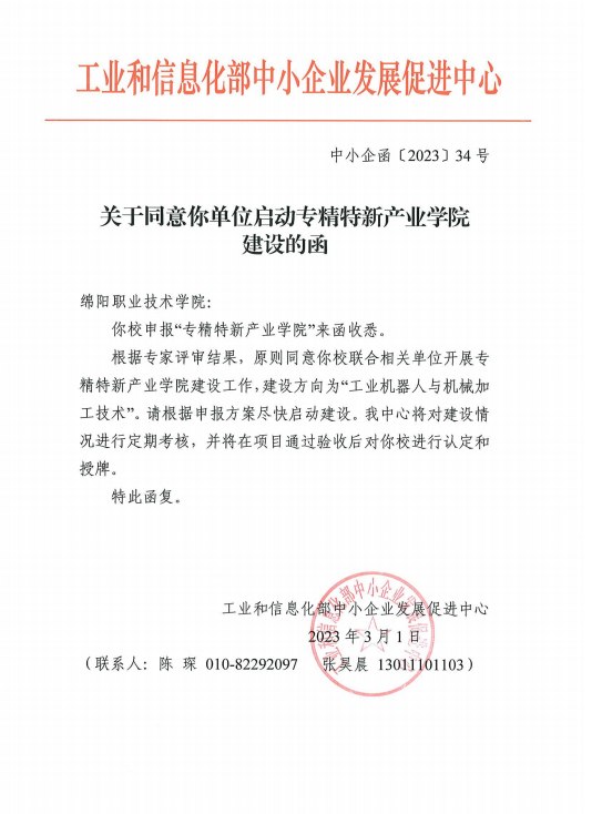 近日,工业和信息化部同意我校启动专精特新产业学院(工业机器人与机械加工技术方向)建设工作。