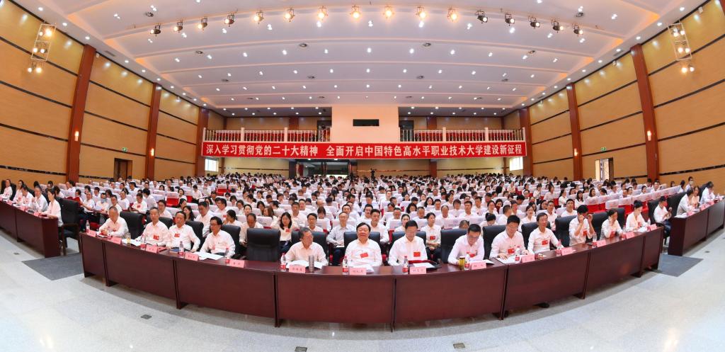 大会的主题是:高举习近平新时代中国特色社会主义思想伟大旗帜,深入学习贯彻党的二十大精神,全面贯彻党中央、省委和市委决策部署,准确把握职业教育发展新形势,牢牢抓住学校改革发展新机遇,紧紧围绕立德树人根本任务,踔厉奋发、勇毅前行,努力把学校建设成为中国特色高水平职业技术大学。