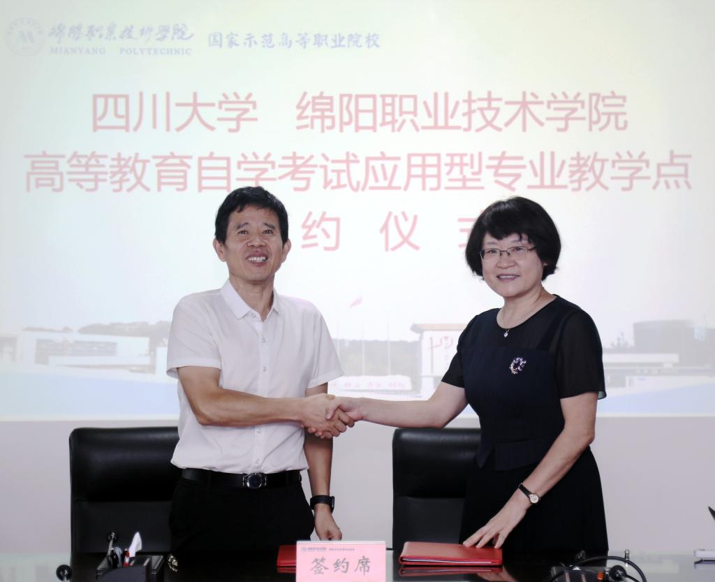 9月5日上午,我校与四川大学举行高等教育自学考试应用型专业教学点签约仪式,在我校设立相关应用型专业教学点。四川大学成人继续教育学院副院长张必涛,我校党委常委、副院长代红英出席签约仪式。