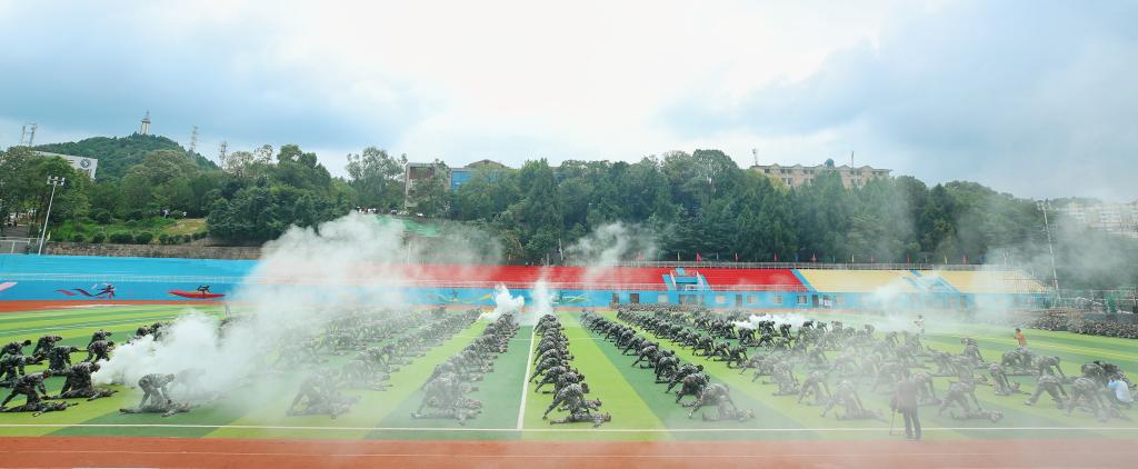 在军训成果汇报表演环节中,伴随着雄壮激昂的乐曲,一个个军训方队的同学,满怀青春的热情,踏着矫健的步伐,喊着嘹亮的口号,器宇轩昂地展示团队的风采,让在场领导和观众充分感受了新一代绵职人的青春活力。战术、拳术、匕首操、枪术、反恐演习等精彩纷呈的汇报表演,赢得了全场观众阵阵喝彩和掌声,也为本次军训交上了一份满意的答卷。(图/文 刘晨晨 杨智雯,杜健)