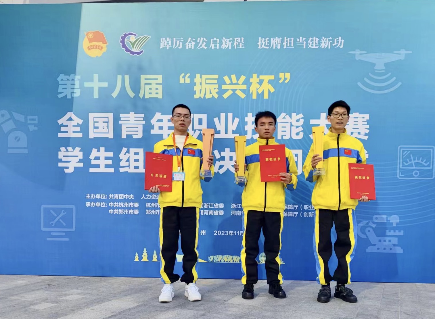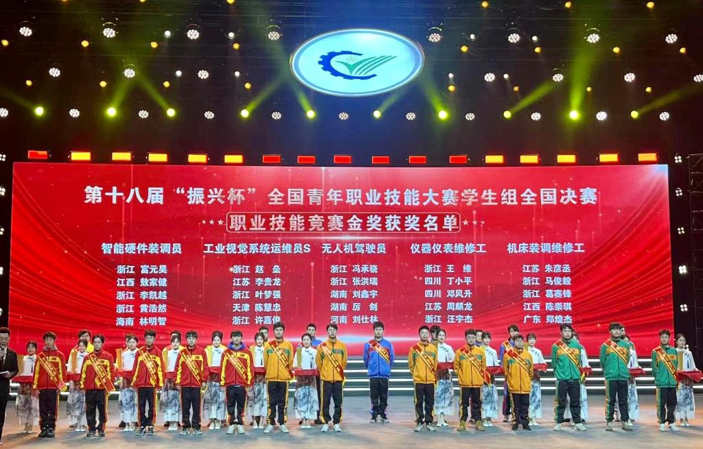 “振兴杯”大赛是由共青团中央、人力资源社会保障部主办的国家一类大赛,经过18年的创新发展,已成为国内赛事规格最高、影响最大、覆盖最广的青年职业技能大赛品牌之一。本次大赛以“踔厉奋发启新程 挺膺担当建新功”为主题,设置主体赛(职业技能竞赛)、专项赛(创新创效竞赛)两项赛事,聚焦新职业、新领域,设置智能硬件装调员、工业视觉系统运维员S、无人机驾驶员、仪器仪表维修工、机床装调维修工等5个竞赛职业(工种),吸引超过12万名学生参加各级初赛,经过层层选拔,最终共有来自全国各省市、自治区共400余名参赛选手同台竞技,经过激烈角逐,共产生金奖25名、银奖25名,铜奖50名。