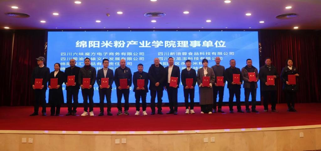 会议审议并通过了《绵阳米粉产业学院理事会章程》,审议并通过了理事长、常务理事、理事单位建议推荐名单。与会嘉宾为相关单位颁发聘书。会议还进行了政、校、企、行四方产教融合项目签约仪式。