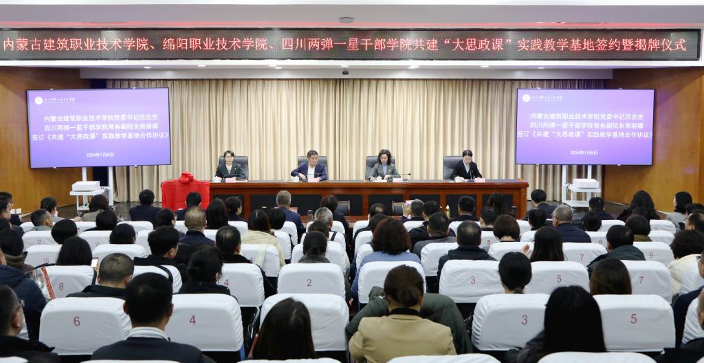 1月8日下午,学校与四川两弹一星干部学院在市委党校举行共建“大思政课”实践教学基地签约仪式。学校党委书记袁蓉、四川两弹一星干部学院常务副院长商丽娜出席签约仪式,共同为绵阳职业技术学院“大思政课”实践教学基地揭牌。党委常委、副院长、宣传统战部部长苟安经出席仪式,四川两弹一星干部学院副院长邓诚主持仪式。