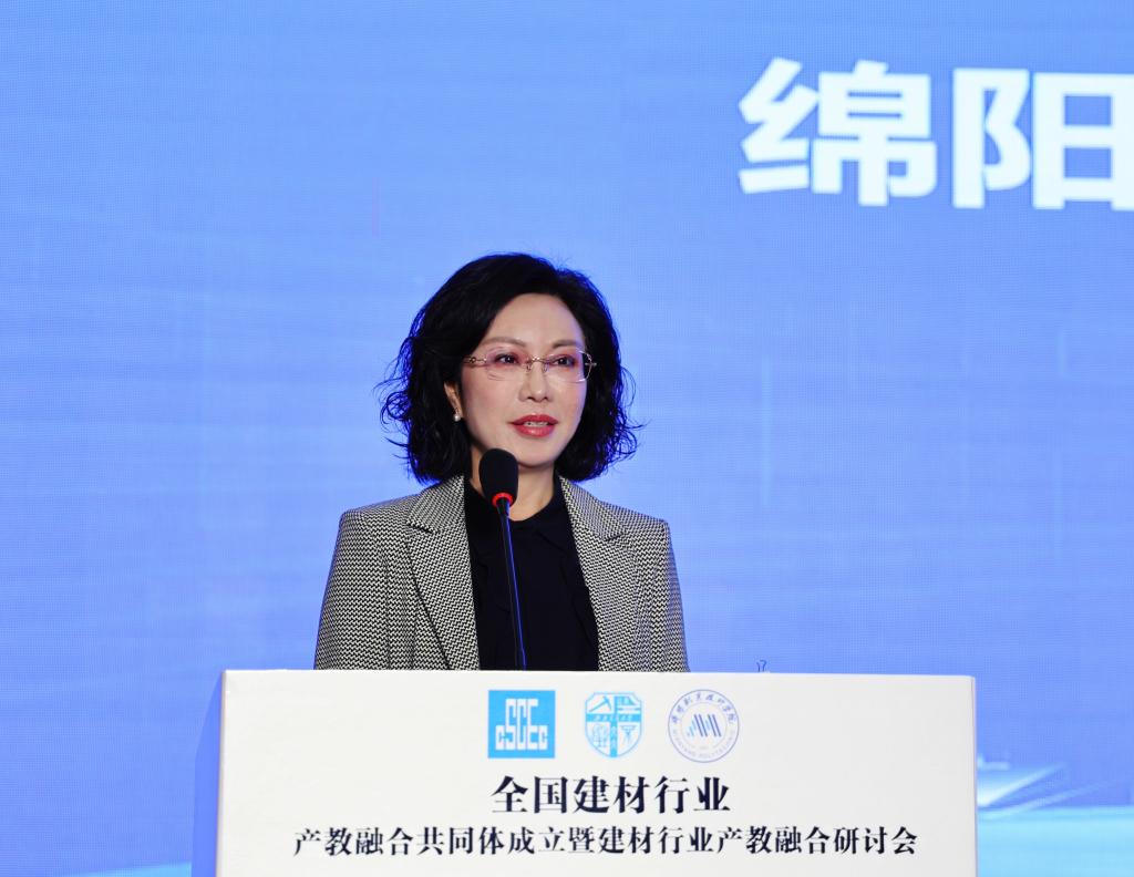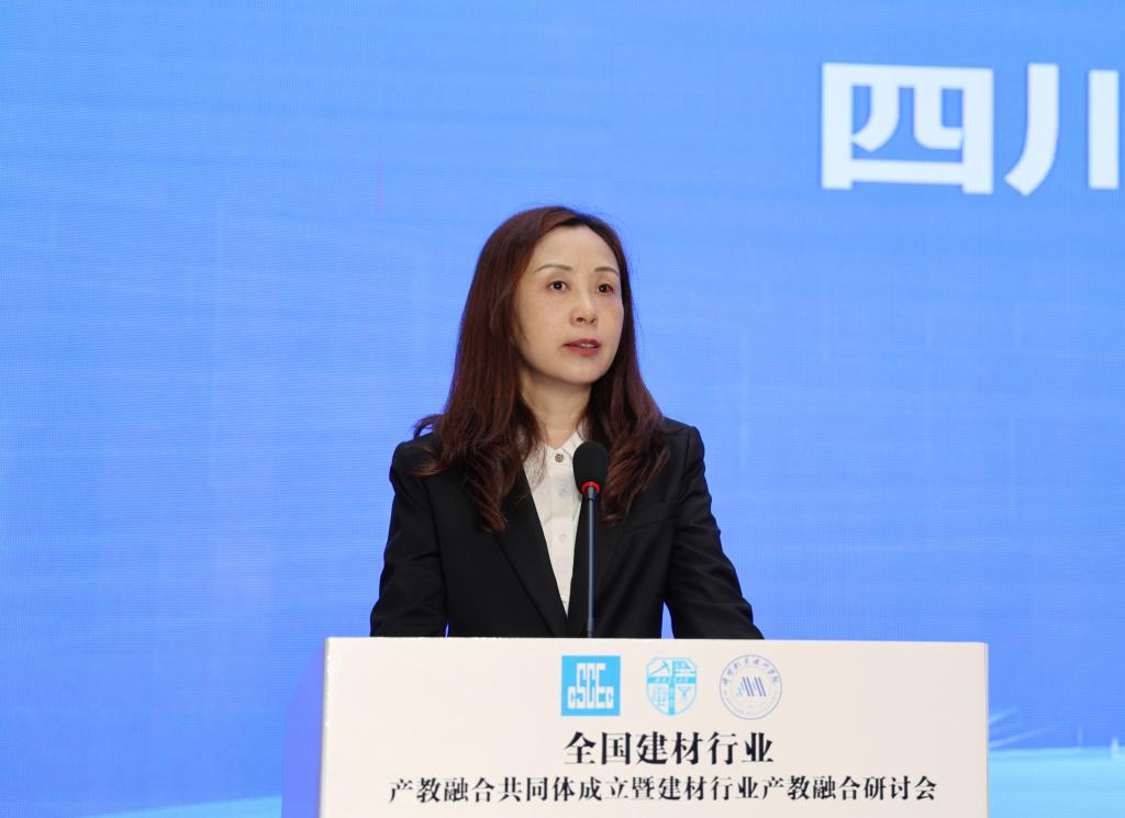 绵阳职业技术学院党委书记袁蓉在致辞中表示,绵职院作为全国建材行业产教融合共同体牵头单位,将充分发挥好协调服务的作用,持续推进行业内各职业院校、企业、科研院所、行业协会之间的多元化合作。以行业为依托,以市场为导向,以项目为纽带,发挥共同体单位和理事会单位各方优势,统筹用好发展合力,推进职普融通、产教融合、科教融汇,延伸教育链、服务产业链、支撑供应链、打造人才链、提升价值链,加强院校人才培养与企业人才需求精准对接,共同推动提升建材产业现代化水平,引领产业迭代升级,打造产教融合共同体的标杆示范,为服务全国建材行业向绿色化、高端化、多元化、集群化方向发展作出新的更大贡献。
