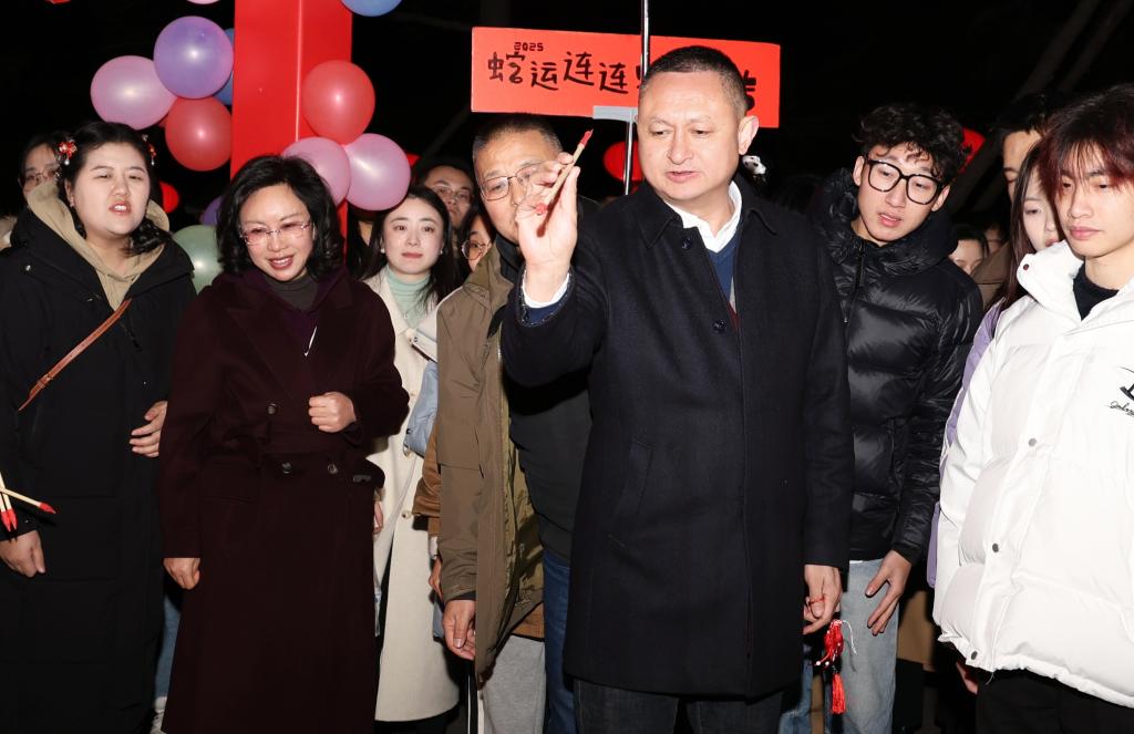 在游园活动中,各二级学院和学校社团设有多个游园点,活动形式多样、内容丰富、异彩纷呈,包括了猜灯谜、扔飞镖、绕口令等趣味游戏项目。活动现场萦绕着师生们的欢声笑语,大家纷纷拿出手机定格精彩瞬间,欢度美好时光。