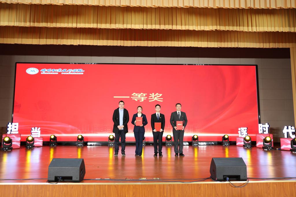 经过激烈角逐,大赛最终评选出特等奖1名、一等奖3名、二等奖2名、三等奖4名及优胜奖若干。马克思主义学院党总支的沈亚鹤老师荣获特等奖,建筑工程学院党总支唐曙、智能制造学院党总支邓靖川和机关二党总支何丹青三位老师荣获一等奖。与会领导为获奖选手颁发荣誉证书。