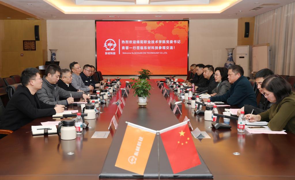 为精准对接产业发展需求,深化校企合作,探索人才培养新模式,11月24日下午,党委书记袁蓉,党委常委、副院长杨建国率队赴四川东材科技集团有限公司调研交流。东材科技党委书记、董事长唐安斌,东材科技副总经理、东方绝缘董事长罗春明陪同。