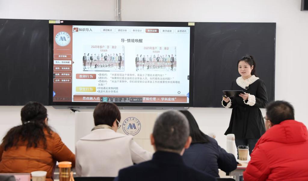 赛后,校领导与参赛选手进行交流并指出,青年教师是学校发展的生力军,本次大赛有效激发了教师的教研热情与创新活力,为教师成长搭建了重要平台,为锻造高素质专业化教师队伍提供了有力支撑。学校将持续加强教师队伍建设,通过多元化举措支持青年教师成长,深化课堂教学改革与创新,全面提升教育教学质量,为青年教师专业成长赋能,为学校高质量发展注入持续动力。(教务处供稿 图:黄黎,编辑:谌丹阳)