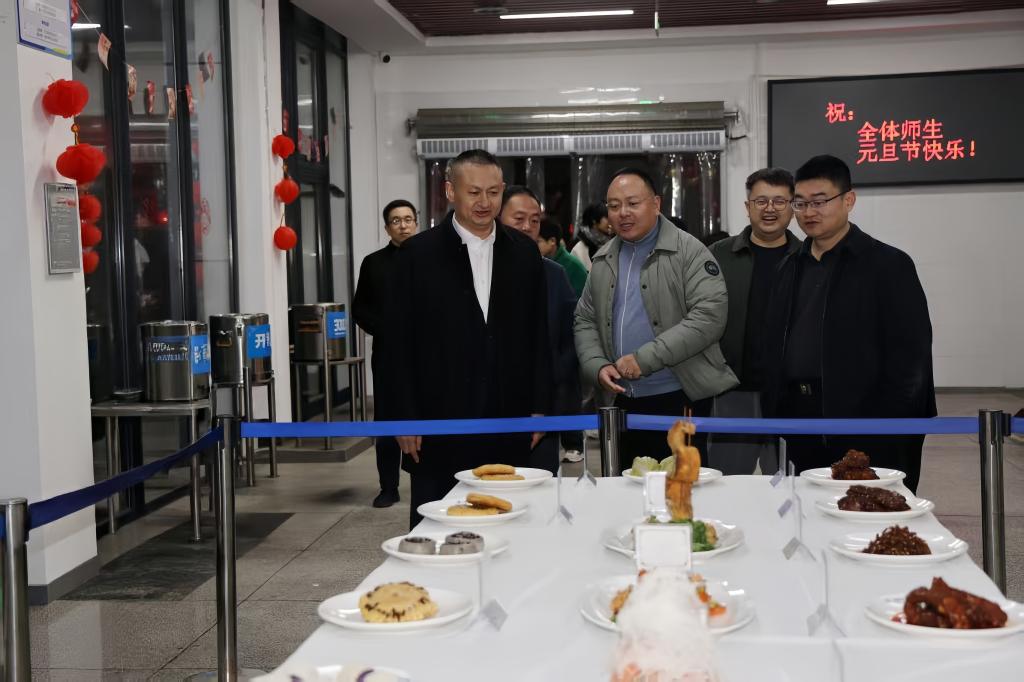 在一食堂的美食节现场,学校的大师傅们为师生精心准备了丰富可口的美食。从米粉、抄手到各类卤菜炸货,琳琅满目的餐食让人垂涎。王荣海等校领导走进食堂,与就餐师生亲切交流,细致询问大家在2025年的收获感悟,认真倾听师生对2026年的规划与展望,并勉励大家在新的一年里勤勉奋进、笃行实干,在学习与工作中再创佳绩。
