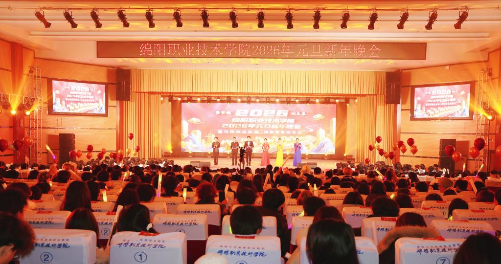 当晚,以“骏马蹄疾启新程,绵职青春绽芳华”为主题的2026年新年晚会在学术报告厅精彩上演。歌曲、舞蹈、朗诵等节目轮番登场,为师生们呈现了一场精彩的视听盛宴。同学们用动感的舞姿诠释青春活力,以优美的歌声传递美好祝愿。晚会高潮迭起,掌声雷动,充分展示了我校学子多才多艺、昂扬向上的精神风貌。
