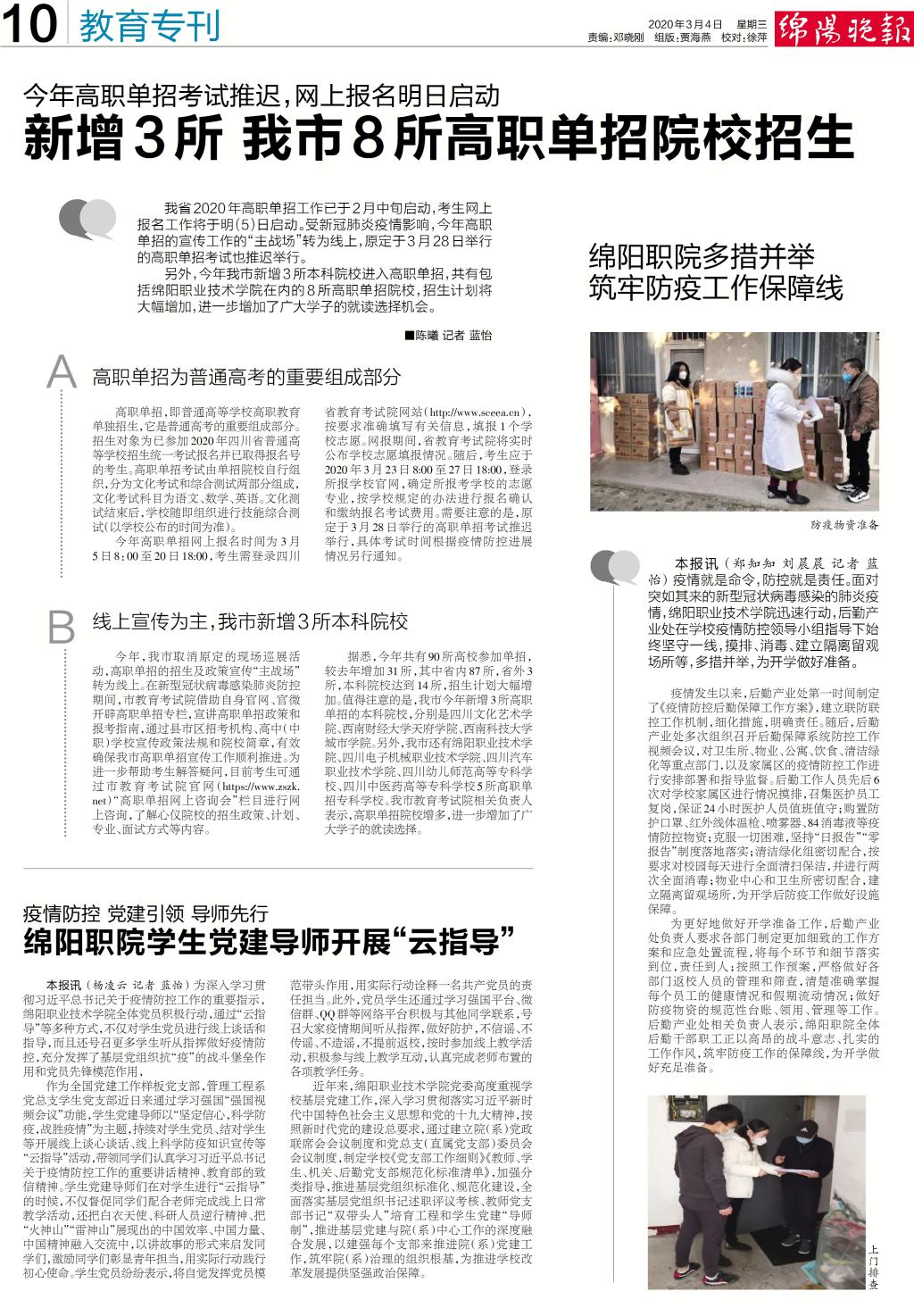 凤凰新闻网、网易新闻、绵阳晚报:未雨绸缪 切实筑牢校园防疫工作保障线