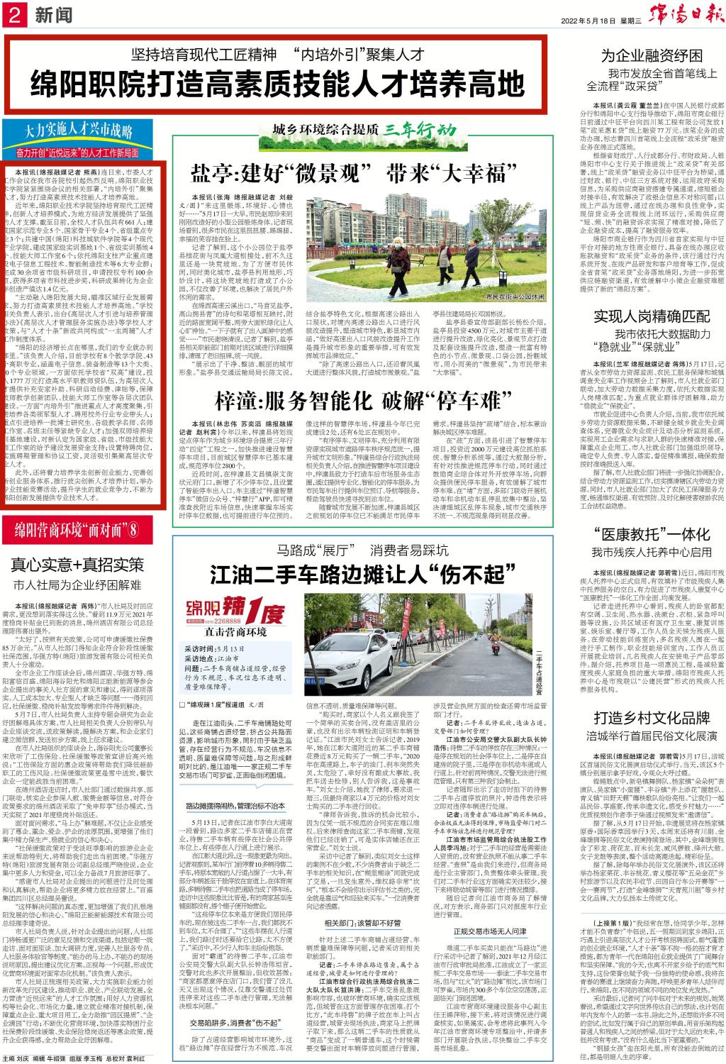 近日,绵阳市委人才工作会议在各院校引起强烈反响。我校紧紧围绕会议的相关部署,“内培外引”聚集人才,努力打造高素质技术技能人才培养高地。5月18日出版的《绵阳日报》对此进行了相关报道。