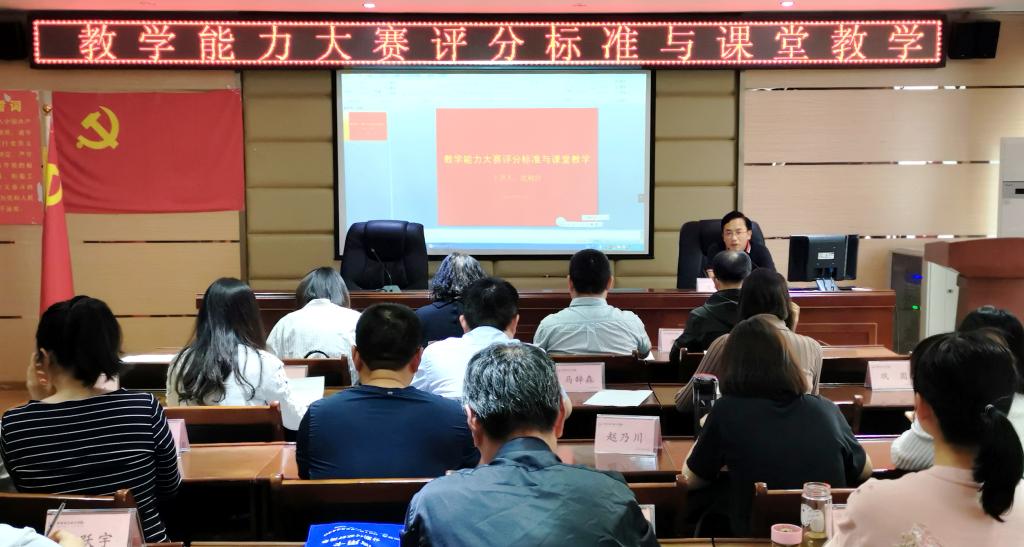 4月27日下午,财经商贸学院举办教学能力大赛评分标准与课堂教学专题讲座。学校党委常委、纪委书记沈利剑主讲。学院全体教职工参加。讲座由院长王婷主持。