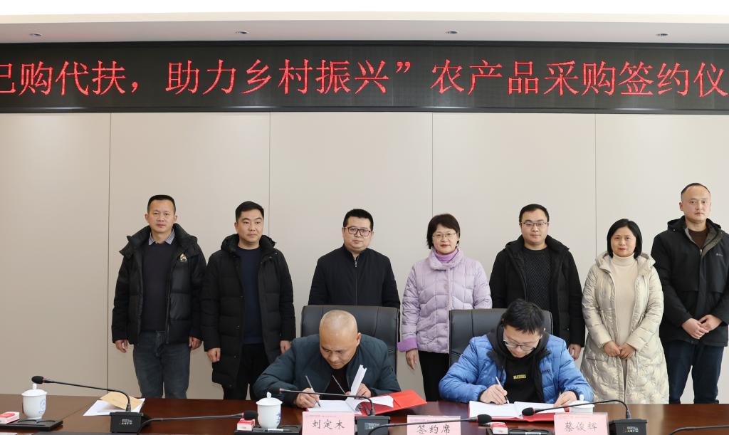 1月8日下午,学校在第二教学楼举行“以购代扶、助力乡村振兴”农产品采购签约仪式。江油市战旗镇党委书记贺靳,学校党委副书记、工会主席代红英出席活动。