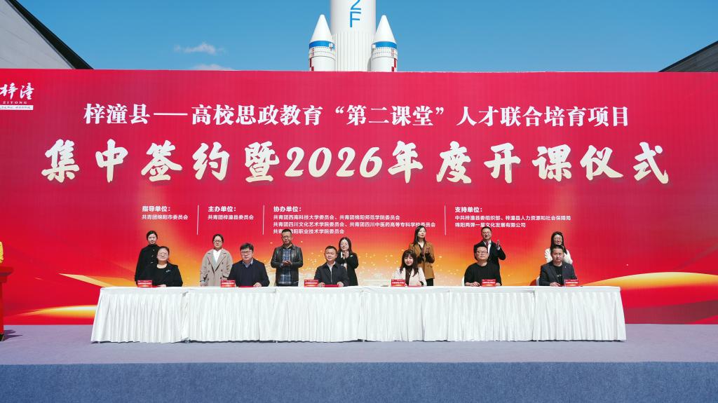 3月9日下午,高校思政教育“第二课堂”人才联合培育项目集中签约暨2026年度开课仪式在“中国两弹城”举行。我校与共青团梓潼县委签订共建合作协议。