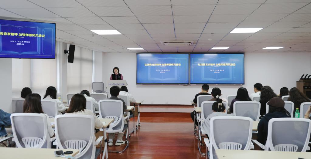 代红英以《践行教育家精神,加强师德师风建设》为题,带领参培教师深入学习习近平总书记关于职业教育工作作出的重要指示精神,系统梳理了教育家精神的传承脉络与时代要求。她结合国家及学校层面相关制度政策,细致解读了师德师风的丰富内涵与时代意义,勉励全体教师以教育家精神为引领,坚守为党育人、为国育才的初心使命,将师德师风内化于心、外化于行,在教育教学工作中,做到以德立身、以德立学、以德施教,用实际行动当好学生成长的引路人,为学校的高质量发展贡献青春力量。